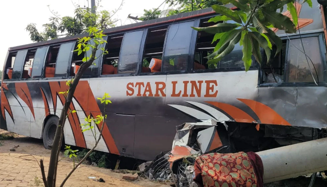 নিয়ন্ত্রণ হারিয়ে বিদ্যুতের খুঁটির সঙ্গে বাসের ধাক্কা, নিহত পথচারী